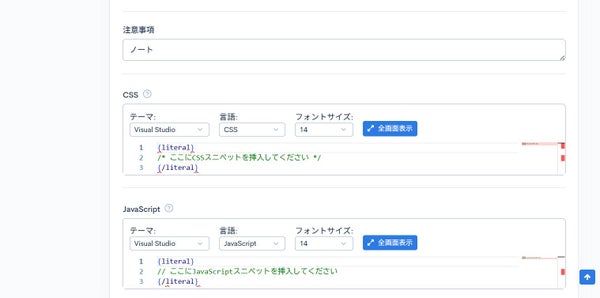 | JavaScript | コンテンツ編集画面のJSを設定することができます。 |