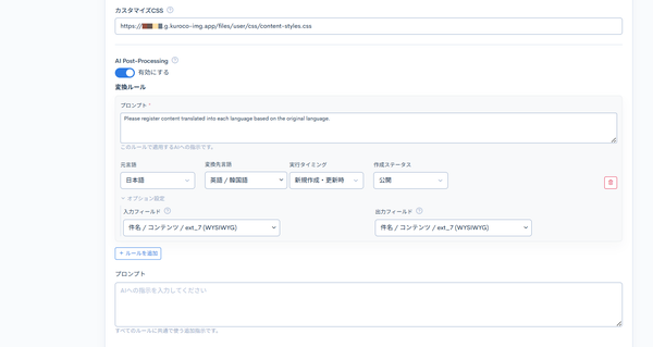 | カスタマイズCSS | CSSのURLをセットすると、指定したCSSをコンテンツ内の全てのエディタで読み込みます。 |